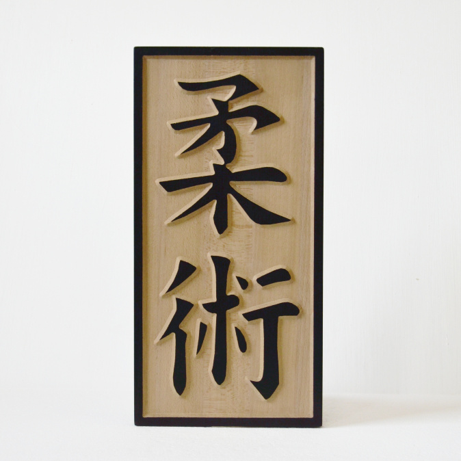 Dřevěný vyřezávaný znak Jiu Jitsu