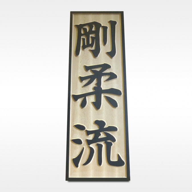 Dřevěná tabulka je přesně vyřezána z buku, povrchově upravená černou barvou, která v sobě vykazuje strukturu tahů štětce. Plasticky vyřezávaná tabulka nesmí chybět v žádném dojo nebo tělocvičně.