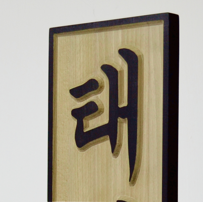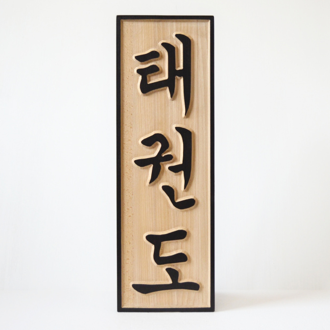 Dřevěná tabulka znázorňuje hlavní rysy Taekwondo. Taekwon-do je korejské bojové umění poprvé představeno roku 1955 v Soulu. Nejdřív bylo stvořeno pro vojenské účely, potom přizpůsobeno pro civilní potřebu.