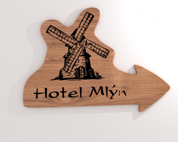 Cedule je vyráběna CNC frézováním. Nápis může být doplněn jakýmkoliv motivem nebo logem. Ručně barveno, celá cedule je lakována transparentním lakem odolným proti povětrnostním vlivům nebo lazurou.